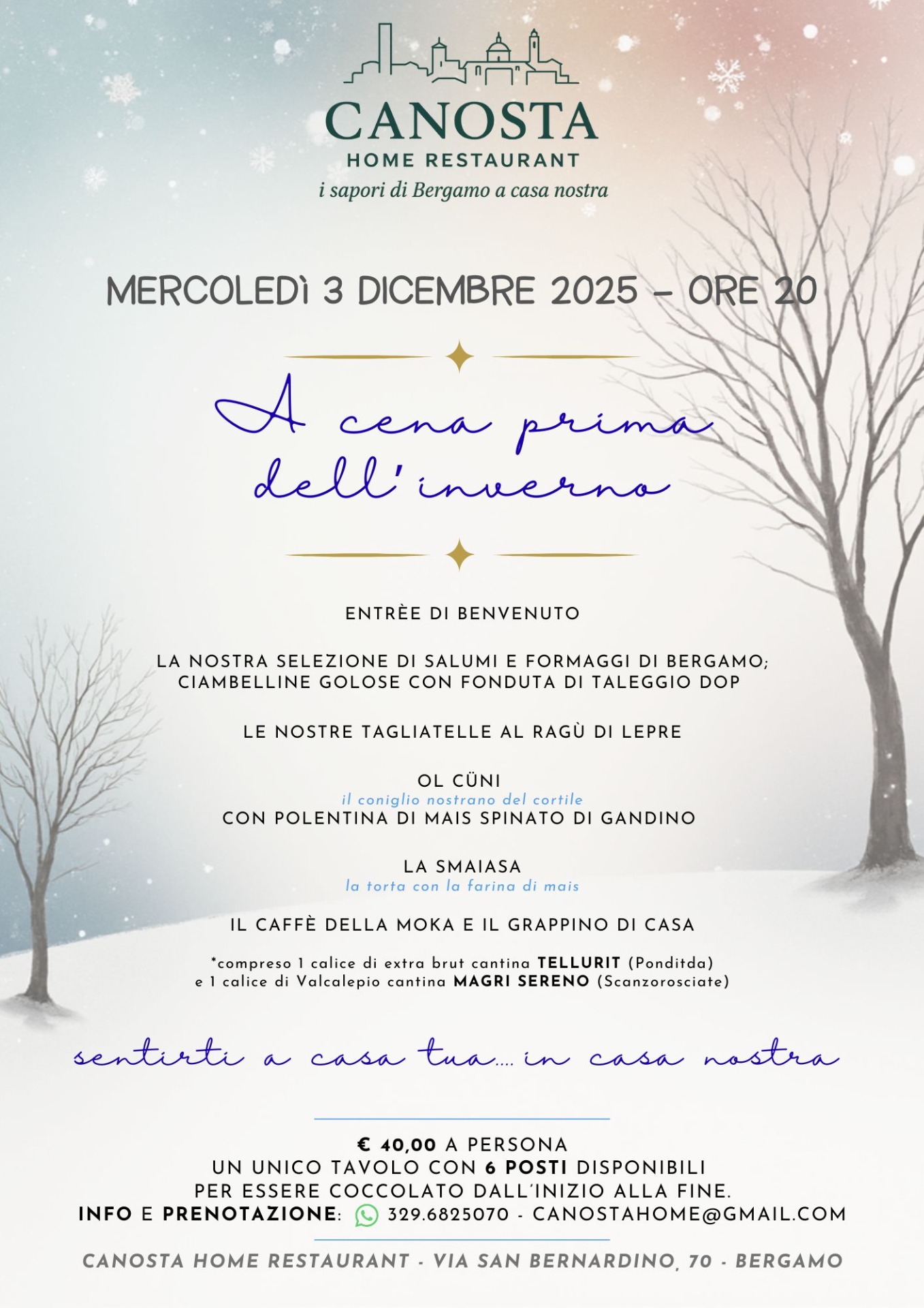 Mercoledì 3 dicembre 2025 ore 20. A casa nostra
